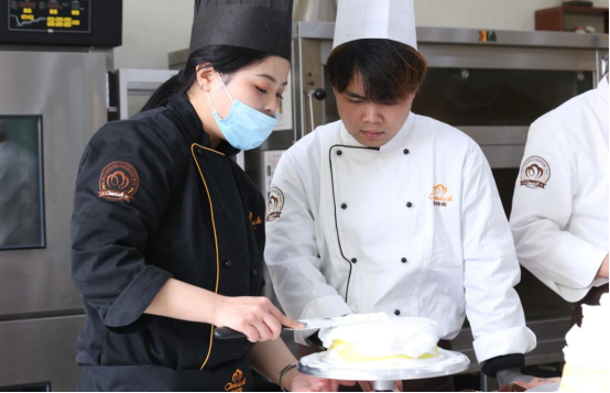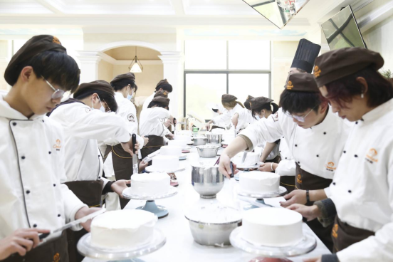 对烘焙有了解的人都应该知道,好的烘焙原材料并不便宜,譬如奶油,健康且口感丰富的动物奶油,其实在操作过程中想做出好看的花样很难,因为它质软,相对于植物奶油,更难操持, 但如今消费理念的最大转变,就是对产品的健康性要求,所以市面上植物奶油的产品逐渐被健康的动物奶油所替代,那么我们打个比方,在学校练习时,如果你所用的原料一直是易塑形的植 物奶油,而最终创业或者就业时使用的是动物奶油,很多人是无法直接上手的,所以学习中需要更多的是有效练习,原料与市场匹配,老师在旁纠错,想学不会都难。